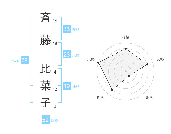斉藤 比菜子さんを姓名の画数から五運を鑑定