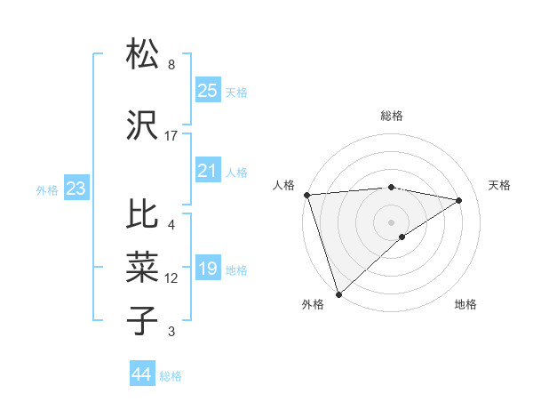 松沢 比菜子さんを姓名の画数から五運を鑑定