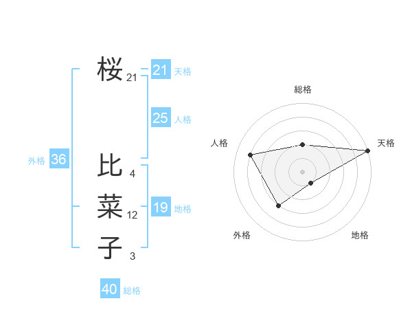 桜 比菜子さんを姓名の画数から五運を鑑定