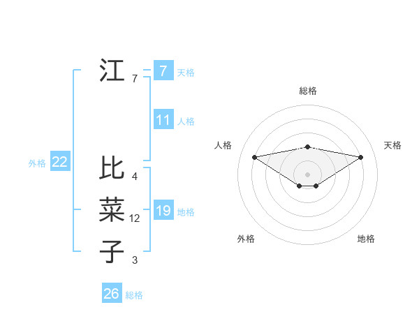 江 比菜子さんの総格は26画の2点!