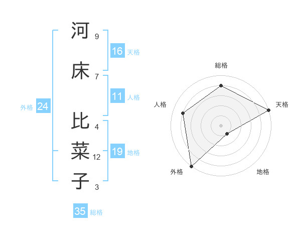 河床 比菜子さんを姓名の画数から五運を鑑定