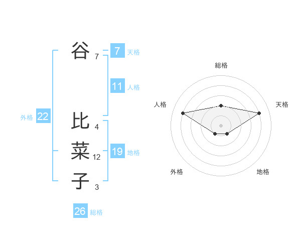 谷 比菜子さんの総格は26画の2点!