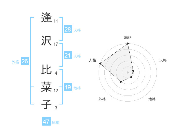 逢沢 比菜子さんを姓名の画数から五運を鑑定