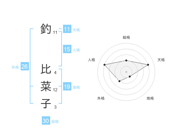 釣 比菜子さんの総格は30画の2点!
