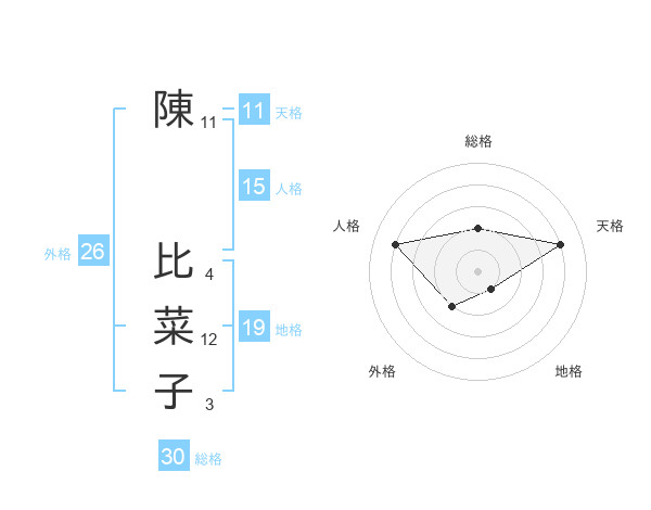 陳 比菜子さんを姓名の画数から五運を鑑定