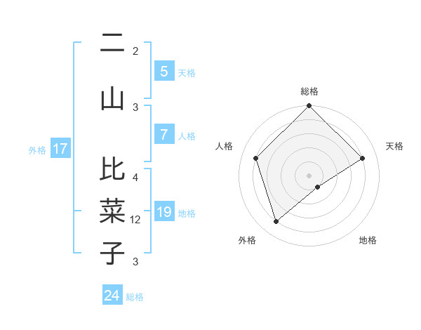 二山 比菜子さんの総格は24画の5点!