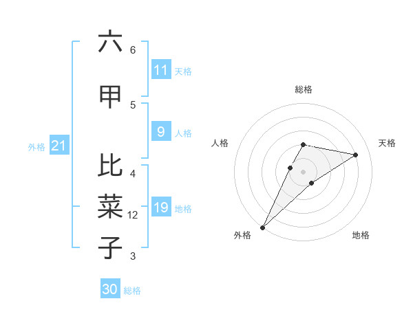 六甲 比菜子さんの外格は21画の5点!