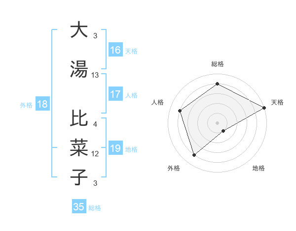 大湯 比菜子さんの天格は16画の5点!