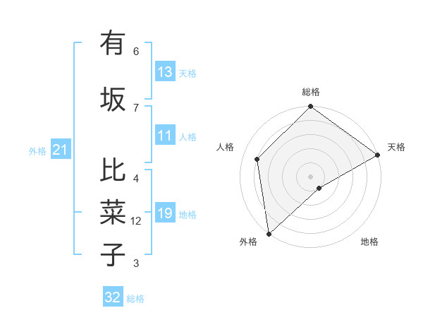 有坂 比菜子さんの天格は13画の5点!