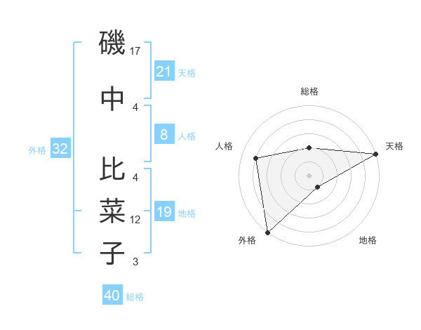 磯中 比菜子さんの外格は32画の5点!