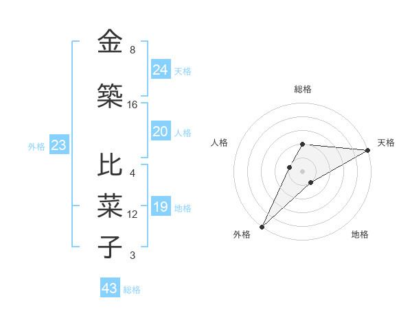 金築 比菜子さんの外格は23画の5点!