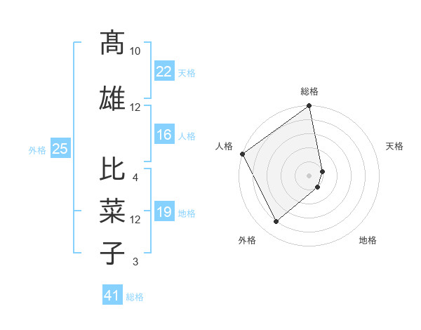 髙雄 比菜子さんの外格は25画の4点!
