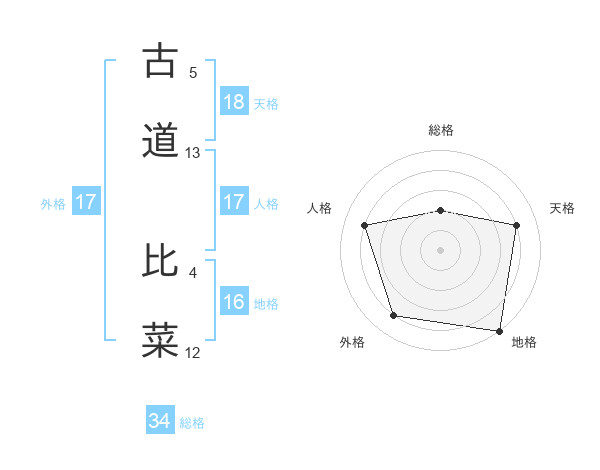 古道 比菜さんの総格は34画の2点!