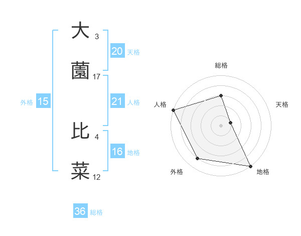 大薗 比菜さんを姓名の画数から五運を鑑定