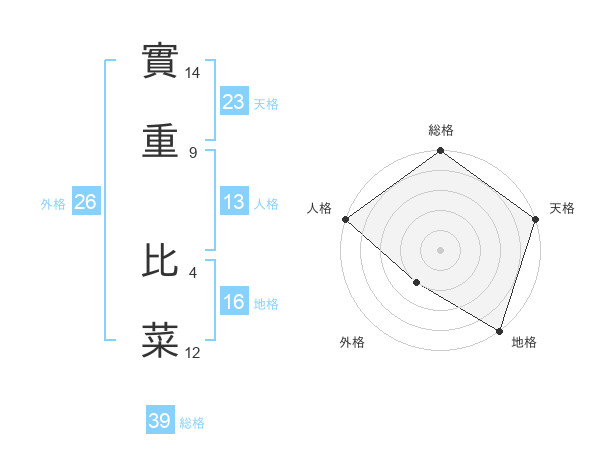實重 比菜さんの天格は23画の5点!