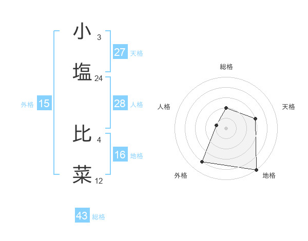 小塩 比菜さんを姓名の画数から五運を鑑定