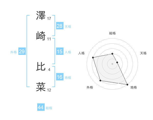 澤崎 比菜さんの外格は29画の4点!
