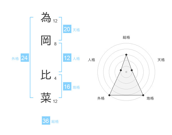 為岡 比菜さんを姓名の画数から五運を鑑定