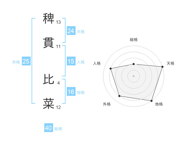 稗貫 比菜さんの天格は24画の5点!