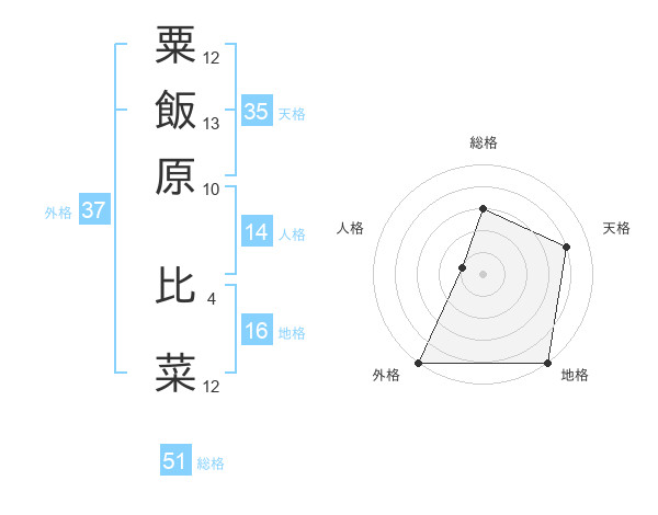 粟飯原 比菜さんの総格は51画の3点!