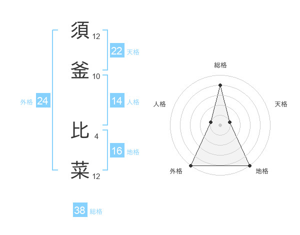 須釜 比菜さんの総格は38画の4点!