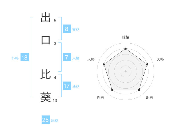 出口 比葵さんの総格は25画の4点!