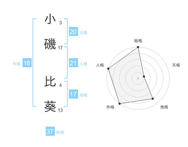 小磯 比葵さんを姓名の画数から五運を鑑定