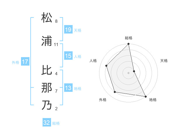 松浦 比那乃さんを姓名の画数から五運を鑑定