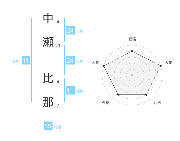 中瀬 比那さんの総格は35画の4点!