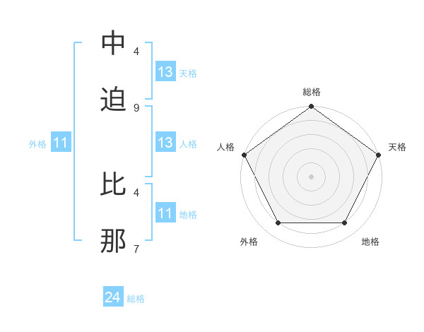 中迫 比那さんの天格は13画の5点!