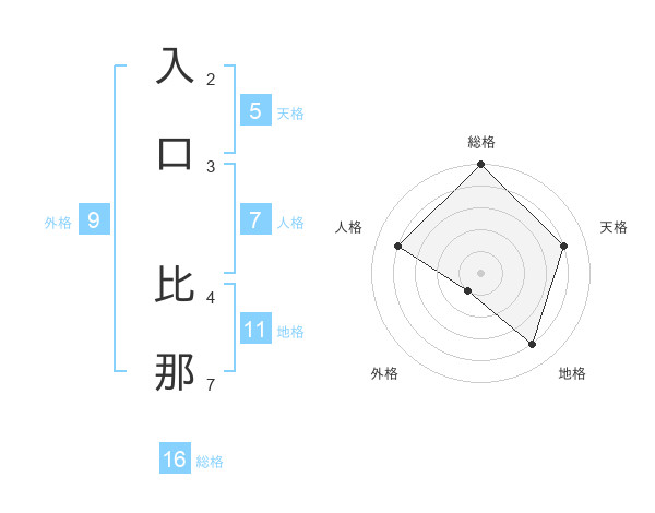 入口 比那さんの総格は16画の5点!