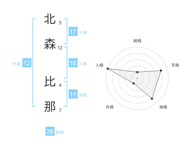 北森 比那さんの天格は17画の4点!