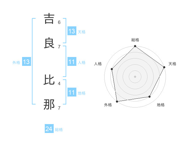 吉良 比那さんの外格は13画の5点!