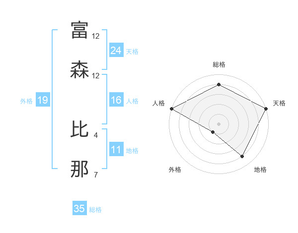 富森 比那さんの天格は24画の5点!