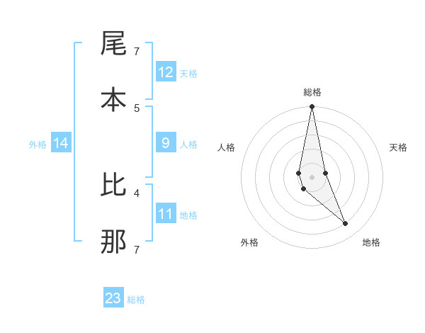 尾本 比那さんの総格は23画の5点!