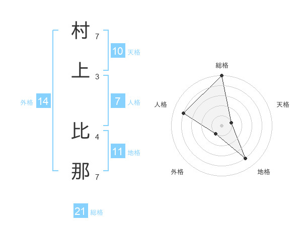 村上 比那さんの総格は21画の5点