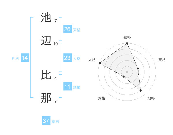 池辺 比那さんの総格は37画の5点!