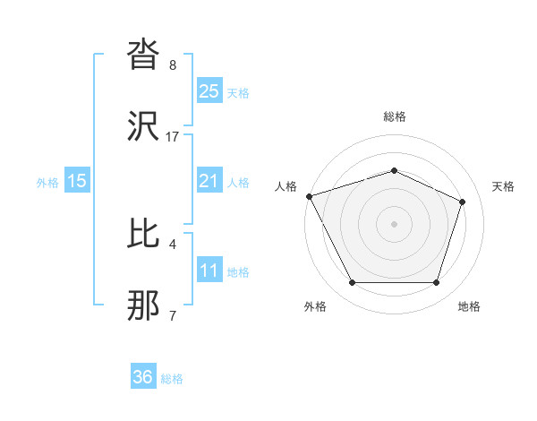 沓沢 比那さんの天格は25画の4点!