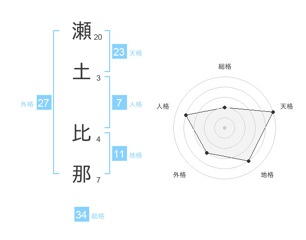 瀬土 比那さんを姓名の画数から五運を鑑定