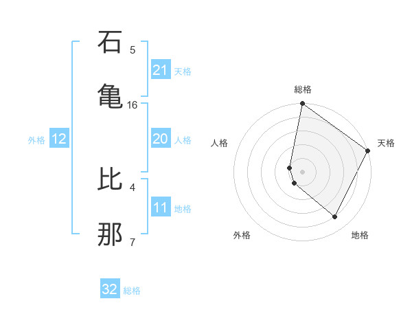 石亀 比那さんの総格は32画の5点!