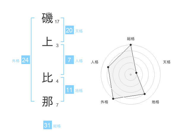 磯上 比那さんの天格は20画の1点!