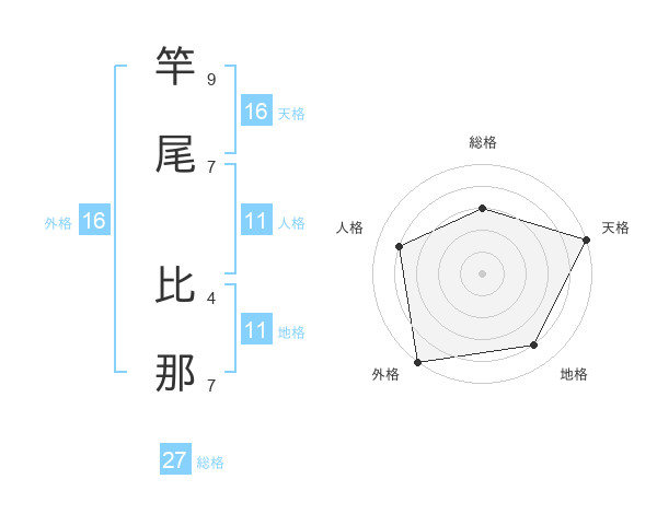竿尾 比那さんを姓名の画数から五運を鑑定