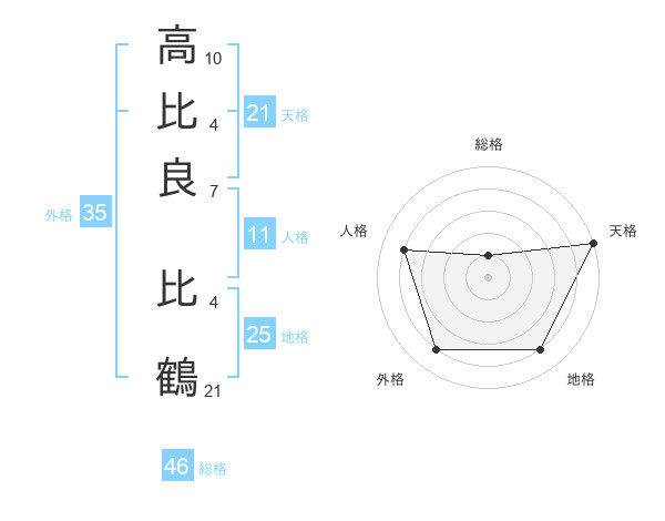 高比良 比鶴さんを姓名の画数から五運を鑑定