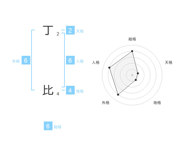 丁 比さんの総格は6画の4点!