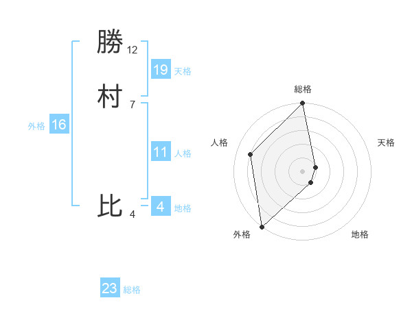 勝村 比さんの総格は23画の5点!