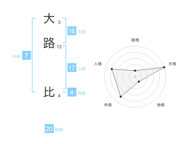 大路 比さんの外格は7画の4点!
