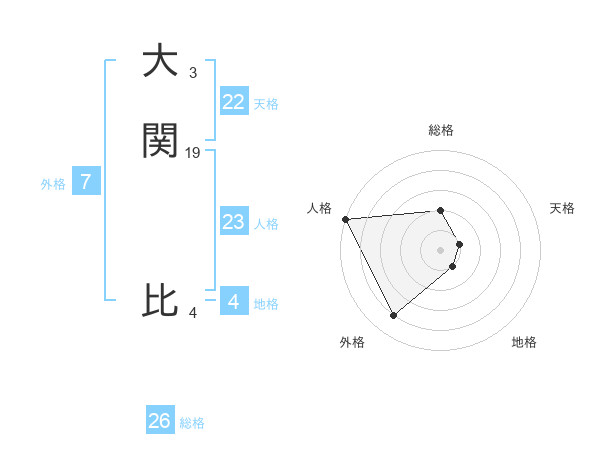 家系が持つ宿命的な運勢を表します。祖先から受け継いだ苗字ですので自分の力が及びません。家柄を象徴します。