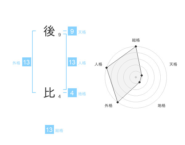 後 比さんの外格は13画の5点!