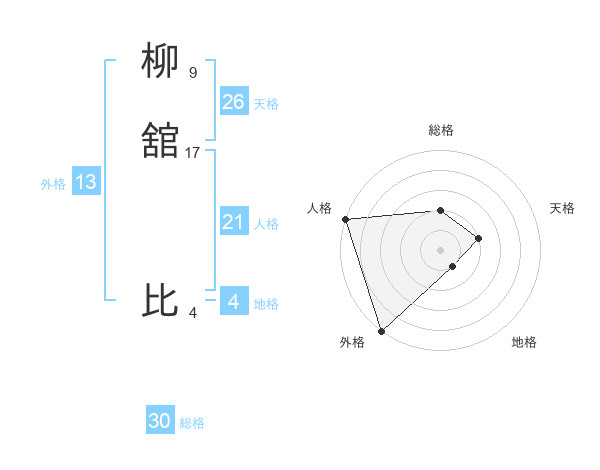 柳舘 比さんの総格は30画の2点!