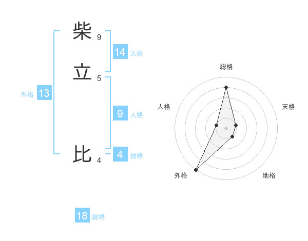 柴立 比さんの総格は18画の4点!